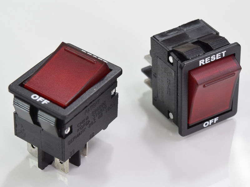 31x22.5mm rocker switches built within one or two circuit breakers, trip-free, cycling