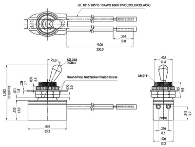 Toggle Switches with Wires up to 3A 125 " L " Rating, Nameplate Optional