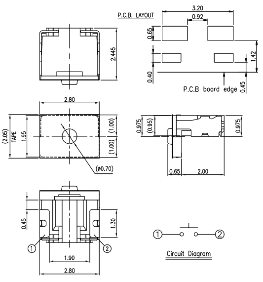 2.8x1.95 Ultra-small Side Push Tact Switch, Mounted along the Rim of PCB to Save Space, 300K Cycles